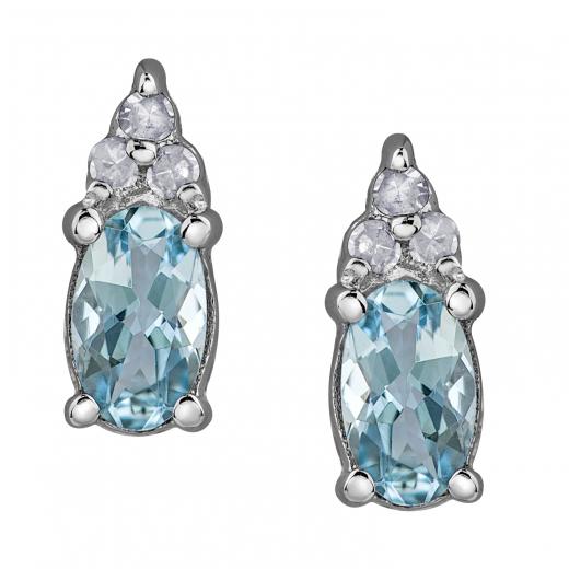 This attractive ring features an oval cut aquamarine accented by shimmering diamonds. This birthstone ring is set in 10k gold and enhanced with a high polish finish. Aquamarine is the March birthstone, making this ring the ideal choice as a birthday gift, or adding a touch of class to your own jewellery collection.