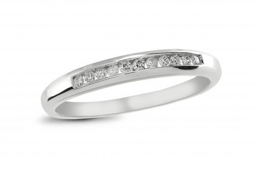 Refined elegance marks this classic 10k white gold wedding band, featuring a row of channel-set, round brilliant diamonds totaling .10-carat.