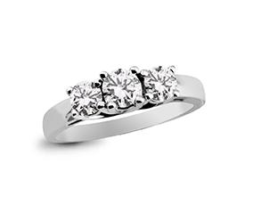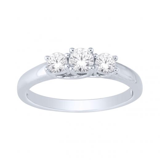 Keep your past, present and future close to your heart with this stunning trio of round diamonds, claw set in glittering 14k white gold. This ring is a romantic symbol of your lasting love.
