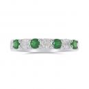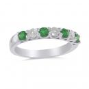 This charming ring features four round cut emeralds and three brilliant cut diamonds. This magnificent anniversary band is crafted in glittering 14k white gold and is sure to add a touch of elegance to your collection.