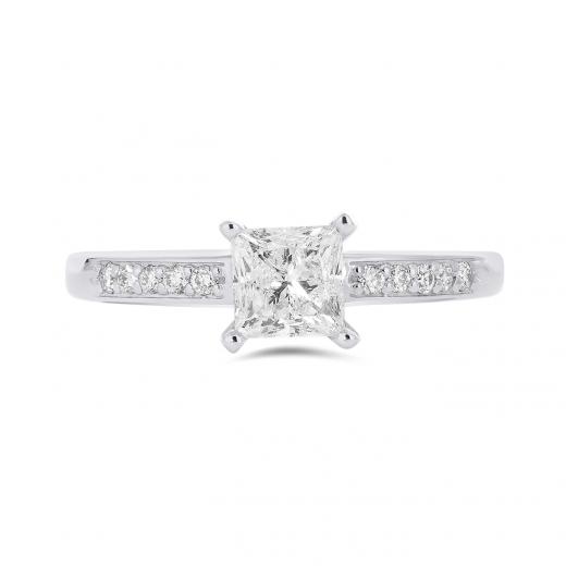 Make her feel like royalty with this chic Princess cut ring. Crafted in 14-karat white gold and completed with diamond set shoulders, this diamond ring is sure to rule.