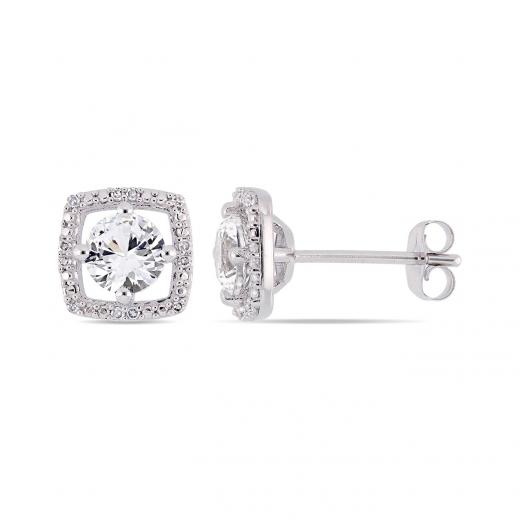 This modern floating square halo gemstone ring is crafted in white gold and features a solitaire created white sapphire stone in a unique floating 30 diamond halo design. Add a touch of elegance and color to any ensemble with this stunning ring. Whether worn as an engagement ring or simply a lovely new gemstone piece, this ring is a perfect addition to any jewelry collection.