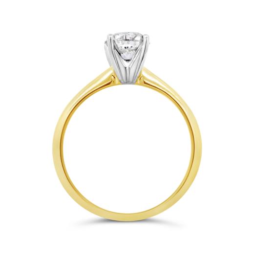 The 14K yellow gold setting complements the diamond perfectly, providing a warm and radiant backdrop that enhances its brilliance. The yellow gold band is sleek and polished, adding a touch of timeless elegance to the overall design.