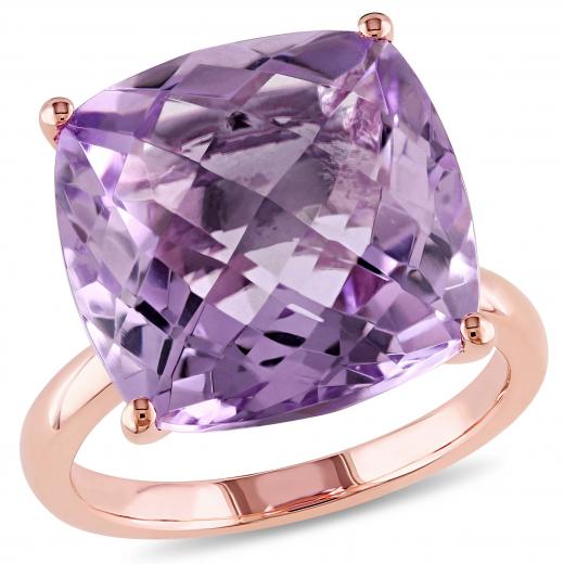 Show off your flair with this cocktail ring from our Collection which features a luminous cushion-cut pink amethyst in the center. This dazzling ring is crafted in luscious 14-karat rose gold and is enhanced with a high polish finish.