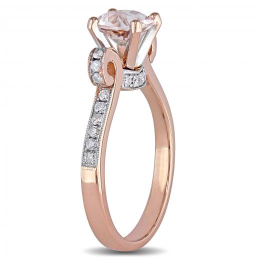 This exceptional engagement ring from the Signature Collection is crafted in 14-karat rose gold and features a round-cut morganite crowning the ring's centre and a fancy shank decorated with contrasting diamonds. This ring is a perfect choice of style and class.