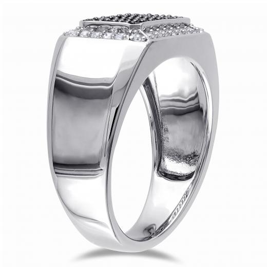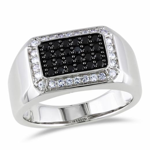 This gorgeous ring features round-cut black spinel center stones and round-cut white sapphire side stones set in sterling silver. This pretty ring is enhanced with a high polish finish.