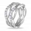 This beautiful ring is made with round-cut white cubic zirconia gemstones set in sterling silver. The fancy ring glimmers with high polished finish.