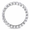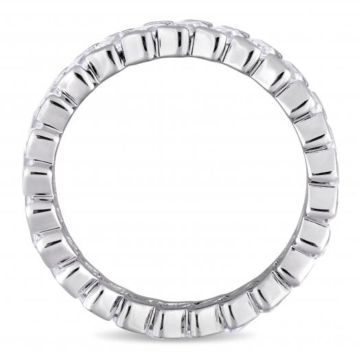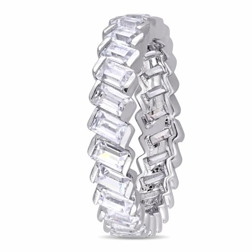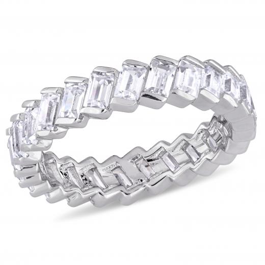 This elegant full eternity band is crafted in sterling silver and features 28 baguette-cut cubic zirconia, beautifully set all along its band. This classic and sparkling piece is the perfect symbol of true love and commitment.