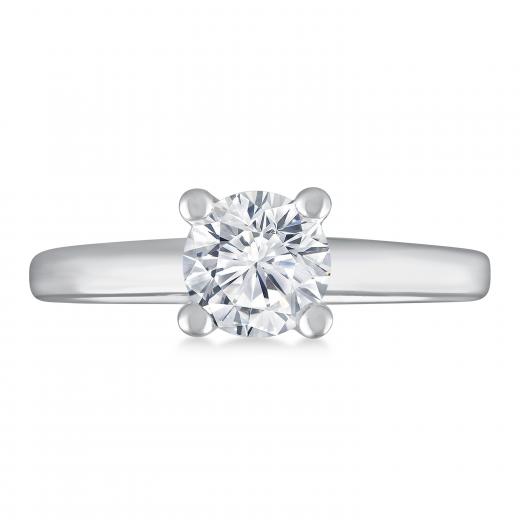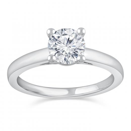 The most iconic of engagement ring styles, the solitaire symbolizes the connection and unity you share with the one you promise to love for an eternity. Featuring a round 1.00ct ideal cut Glacier Fire Canadian Diamond set into a 14k white gold band, this ring shines bright, like your love.