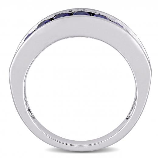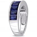 Add this glittering Created Blue Sapphire Semi-Eternity Anniversary Ring to your wardrobe and be sure to stand out in a crowd. Mounted in glittering sterling silver, it features nine baguette-cut, channel-set created blue sapphire gemstones (5 x 3mm) resting in a line forming a semi-eternity style. Gift this vibrant gemstone anniversary ring as wonderful token of love or keep it for yourself to enhance your own jewelry collection.