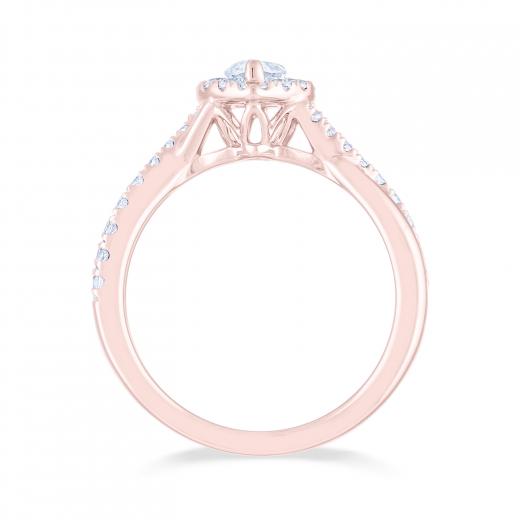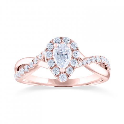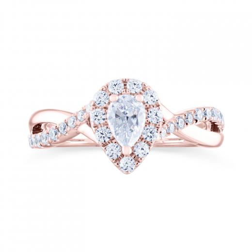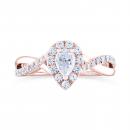 The beauty of love sparkles forever within this remarkable .70ctw rose gold bridal ring from Diamond Revelations. Featuring a dazzling .30ct pear shaped diamond at its centre, this ring sparkles with a round diamond halo and a wave of diamonds along its twisted band.