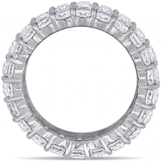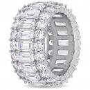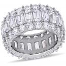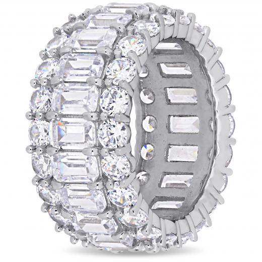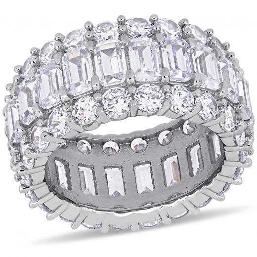 This shimmering multi-cut cubic zirconia full eternity band is crafted in lustrous sterling silver and features 22 emerald-cut and 44 round-cut cubic zirconia stones in a unique triple row full-eternity band design. Whether worn as an anniversary band or simply a sumptuous gemstone piece, this ring is sure to make a standout addition to any jewellery collection. Choose this gemstone ring either for yourself or as a special gift for someone you love.