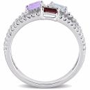 Show off your style with this charming Sky Blue Topaz, Amethyst, Garnet, and White Topaz Triple Row Ring. Crafted in sterling silver, this beautiful three-stone design features a baguette-cut, prong-set amethyst, garnet and sky blue topaz gemstone (4 x 2mm). Additionally, 73 round-cut, buttercup-set white topaz gemstones (1 x 1mm) adorn the three rows of this ring. Enhanced with a high polish finish, this gemstone fashion ring brings the elegance to any attire.