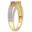 Make your day extra special with this striking Citrine, Peridot, Amethyst and White Topaz Triple Row Ring. Crafted in yellow rhodium-plated sterling silver, this beautiful three-stone design features a baguette-cut, prong-set amethyst, peridot and citrine gemstone (4 x 2mm). Additionally, 73 round-cut, buttercup-set white topaz gemstones (1 x 1mm) rest along the ring's three rows. Enhanced with a high polish finish, this intriguing gemstone design is sure to be a jewelry box favorite.