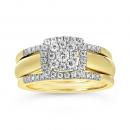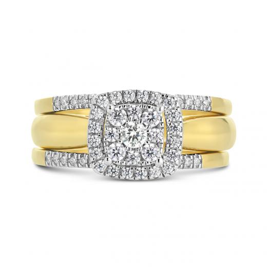 The combination of yellow and white gold in this three-piece bridal set offers a unique and eye-catching design. The contrast between the two gold colours adds visual interest and creates a modern yet timeless aesthetic.