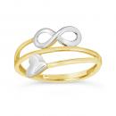 This beautiful ring is crafted in a captivating combination of 10-karat yellow and white gold, featuring a charming design that combines the infinity symbol with a heart. The infinity symbol represents limitless love and devotion, while the heart is a timeless symbol of affection and passion. The combination of both elements makes this ring a meaningful and elegant choice, perfect for expressing your enduring love and commitment. It's a lovely addition to your collection, symbolizing the infinite bond between two hearts.