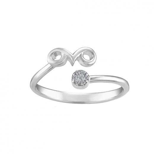 The ring features the distinctive Aries symbol, beautifully engraved and accented with sparkling diamonds that add a touch of brilliance. Crafted from high-quality sterling silver, it combines both durability and a refined shine.