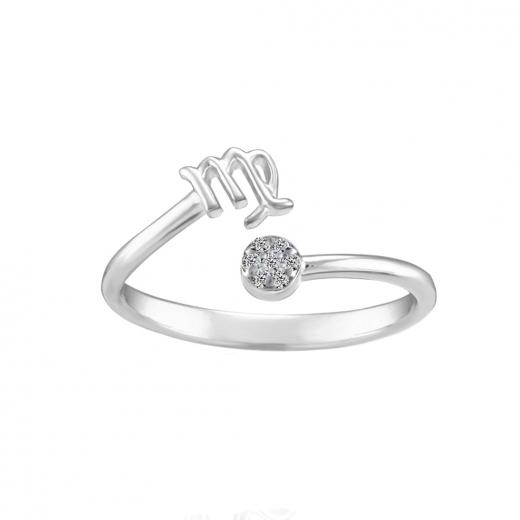 Celebrate the grace and intellect of your Virgo sign with this elegant sterling silver ring. Featuring a delicate Virgo symbol adorned with sparkling diamonds, this ring blends celestial charm with luxurious detail. The sleek sterling silver band complements the diamonds, offering a refined and timeless look.