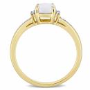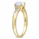 This charming halo engagement ring is crafted in 10-karat yellow gold. This classic wedding ring features a single cushion cabochon-cut, glittering opal gemstone along with 10 round-cut sparkling diamonds beautifully embellished on it. Enhanced with a high polish finish, this beautiful gemstone and diamond ring is a great addition to any jewellery collection. This style represents the combination of natural sophistication and beauty.