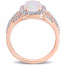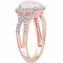 This stunning halo split shank cocktail ring is crafted in radiant 10-karat rose gold. This gorgeous ring features a single oval cabochon-cut, opal center stone surrounded by a halo of round-cut brilliant diamonds and additional diamonds along the split shank band which completes the stylish look of this ring. Wear this bold gemstone and diamond ring on your special evening out and look breathtakingly beautiful. A perfect addition to any jewelry collection.
