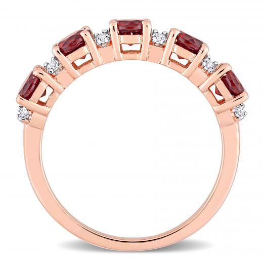 This fabulous stacking five-stone anniversary ring is crafted in rose plated sterling silver. This pretty wedding ring features alternating round-cut garnet and round-cut white topaz gemstones. Enhanced with a high polish finish, this stackable eternity ring is the perfect addition to any jewellery collection. Whether worn as an anniversary band, wedding band or simply a gorgeous gemstone accessory, this ring is a great gift for a woman with a classic and trendy sense of style.