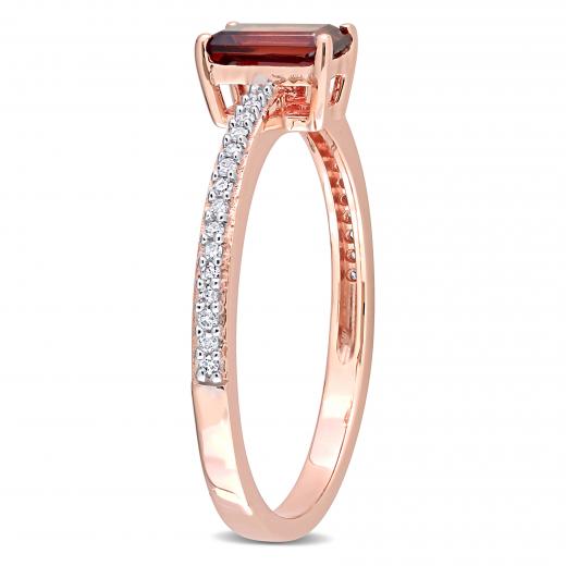 Elegant yet eye-catching, this ring is perfect for those seeking a unique and timeless piece that exudes both luxury and style. The rich red hue of the garnet beautifully contrasts with the warm rose gold band, adding depth and sophistication to the design.
