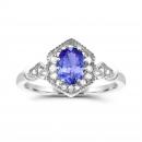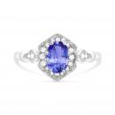 This charming classic ring features a gorgeous oval cut tanzanite surrounded by shimmering white sapphires. This ring is crafted in lustrous 10K white gold and is sure to become a favourite in your jewellery collection.