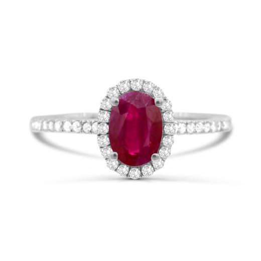 This stunning ruby and diamond halo ring is a true show stopper. It is the perfect ring to show them just how much you care. It is the perfect addition to your attire and it has the perfect classic look for anyone. A truly stunning piece!