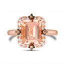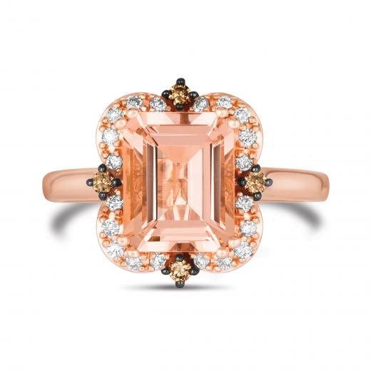 The Le Vian 14K Rose Gold Morganite and Diamond Ring showcases a delicate, blush-pink morganite center stone set in luxurious 14K rose gold. Sparkling diamonds surround the morganite, adding brilliance and elegance to the design.