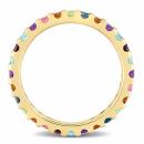 This eye-catching stackable eternity ring is crafted in 10-karat yellow gold. This beautiful anniversary style wedding band features a gorgeous selection of round-cut blue topaz, pink tourmaline, peridot, garnet, amethyst and honey-citrine gemstones along the band. A perfect piece to wear for all occassions, this rainbow gemstone eternity band is sure to make a standout addition to any jewelry collection.