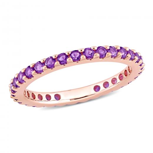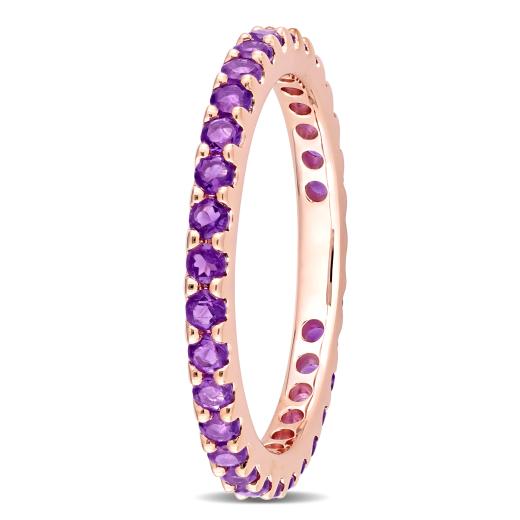 This splendid stackable eternity ring is crafted in 10-karat rose gold. This pretty stacking wedding band features 28-32 round-cut amethyst gemstones. Enhanced with a high polish finish, this gorgeous anniversary style ring is a valuable addition to any jewelry collection. Pair this brilliant eternity band with your favorite casual, professional, or dressy outfit and look gorgeous.