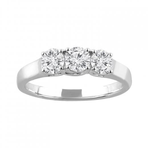 Crafted in 14K white gold, this ring boasts a trio of lab-grown diamonds totaling 1.00CTW with SI2 clarity and HI colour. Its classic three-stone design carries the symbolism of enduring love, making it an ideal choice for celebrating meaningful moments and relationships.