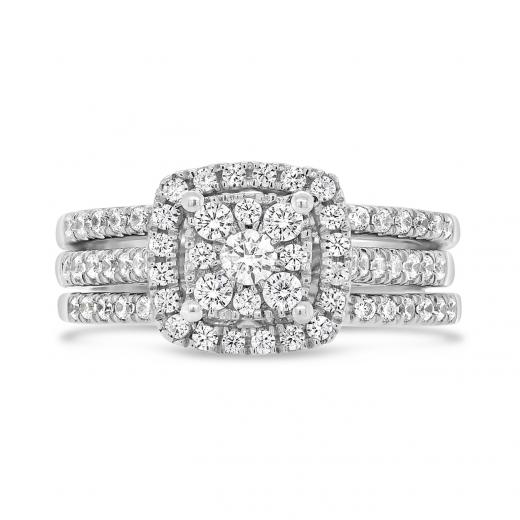 This three piece bridal set is a symbol of love, commitment, and versatility. It offers the flexibility to wear the rings together or separately, allowing for different looks and occasions.