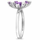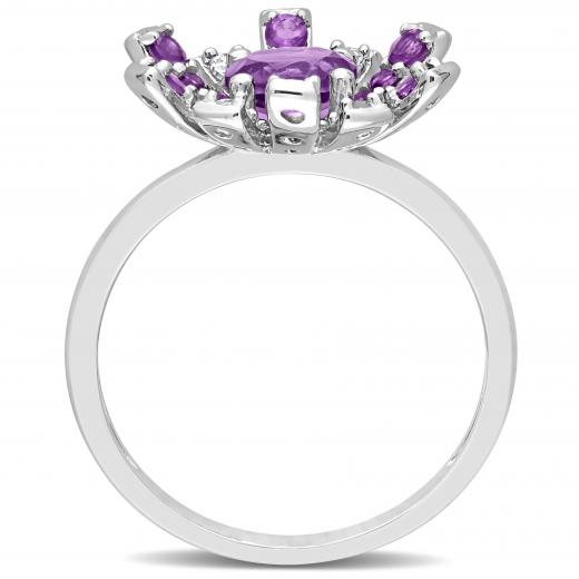 This pretty floral cluster ring is crafted in lustrous sterling silver and features 13 round-cut, prong-set African amethyst gemstones with 18 round-cut prong-set, white topaz gemstones studded in a spiky cluster floral design. Buffed with luster, you can pair this glamorous ring with any casual or business attire. Give yourself a gorgeous look with this trendsetting ring.