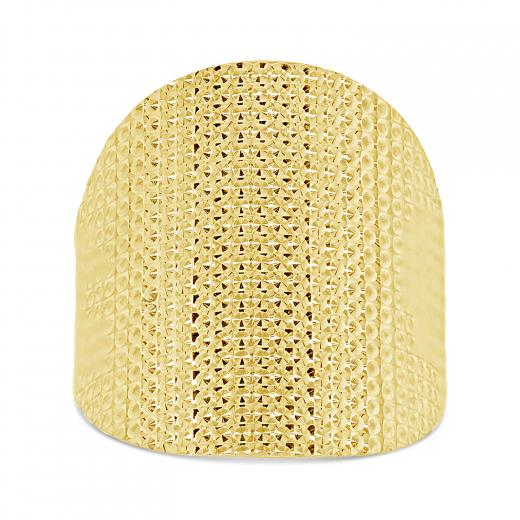 Crafted in the luster of 10k yellow gold is a stylish and modern ring. The ring is enhanced by diamond cut pattern that gives definition to the design. A ring that can be worn with casual or work wear and surely to be noticed by all. Buy this beautiful piece for yourself or for that special someone in your life.