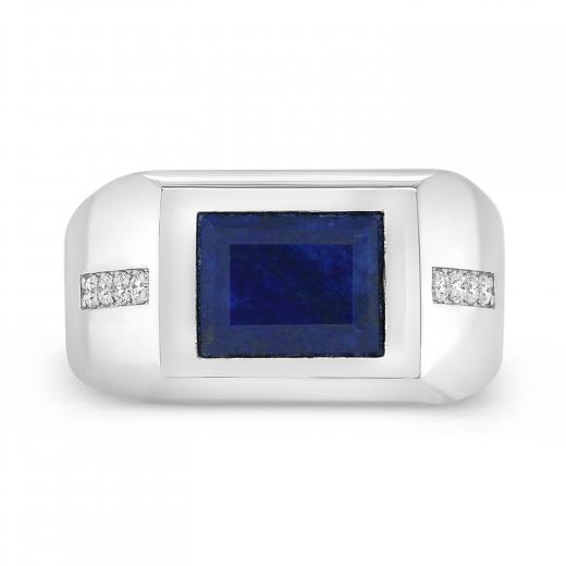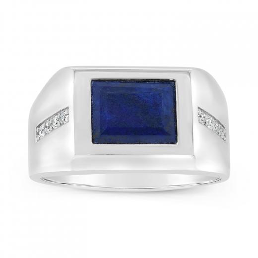 Look extraordinary with this stunning ring!. Crafted in lustrous sterling silver, it features a gorgeous lapis lazuli stone accented by shimmering diamonds. Enhanced with a high polish finish, this  band makes a fashionable addition to any jewellery collection.