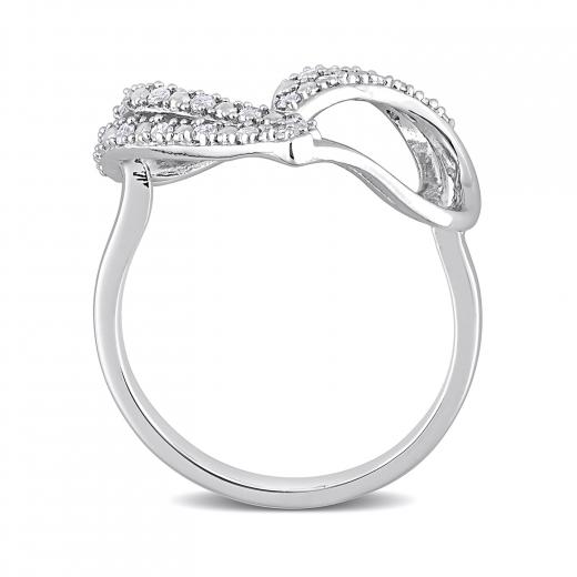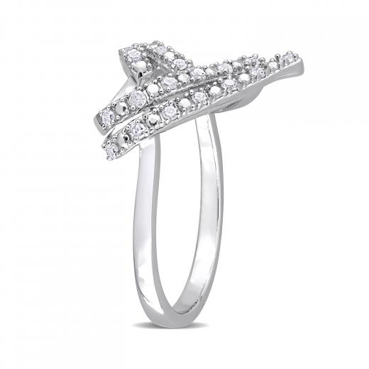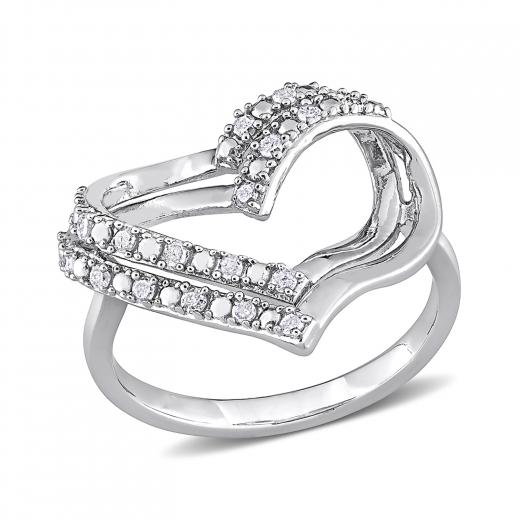 This modern open heart ring is crafted in lustrous sterling silver. This fantastic ring features 20 round-cut sparkling diamonds augmented in the double heart pattern. A splendid addition to your jewelry collection. Wear it with any outfit to look breathtakingly beautiful.