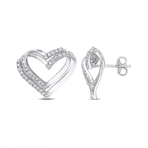 Julianna B Sterling Silver 0.20CTW Diamond Heart Earrings