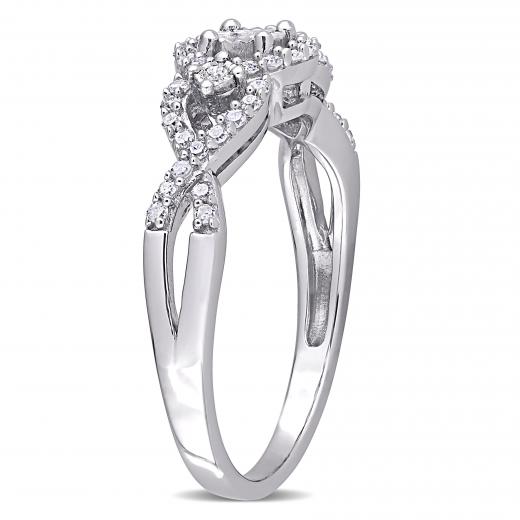 This extraordinary infinity halo engagement ring is crafted in luminous sterling silver. This gorgeous crossover wedding ring features 45 round-cut diamonds beautifully set in a unique pattern. Whether worn as a promise ring, engagement ring or simply a dainty diamond addition, this diamond ring is sure to make a beautiful versatile addition to any jewelry collection. Add glittering elegance to your ensemble and look stunning.