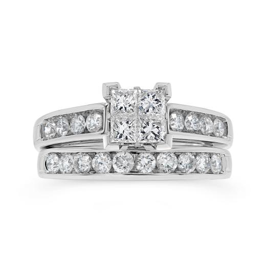 This bridal set offers a beautiful and sophisticated choice for an engagement and wedding ring. Its combination of white gold and sparkling diamonds creates a captivating and elegant ensemble that celebrates love.