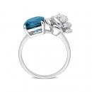 Accessorize stylishly with this modern cushion london blue topaz and white topaz rose ring. Crafted in lustrous sterling silver, this fusion ring showcases one cushion-cut prong-set london blue topaz next to one round prong-set white topaz gemstone studded in a delicate rose design. Enhanced with a polished finish, this beautiful ring is a stunning accessory perfect for a pop of color.