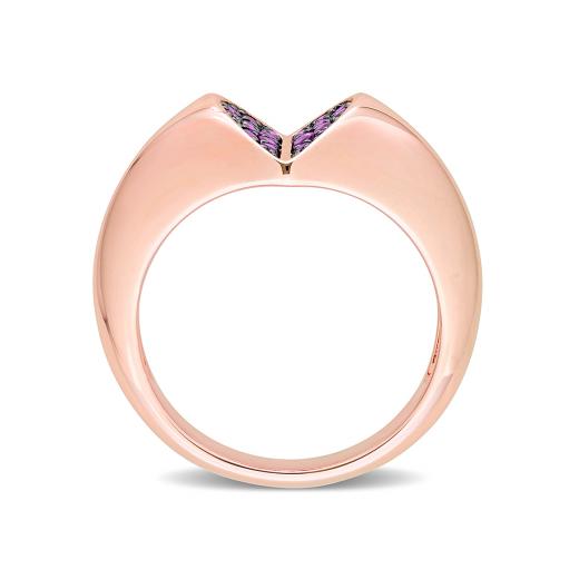 You simply cannot go wrong with this pretty heart cluster ring. Expertly crafted in lustrous rose plated sterling silver, this intricate ring showcases 20 round, pave-set African amethyst gemstones clustered into a heart shape sinking into the ring band. Polished with a brilliant finish, this distinctive ring is a versatile accessory.