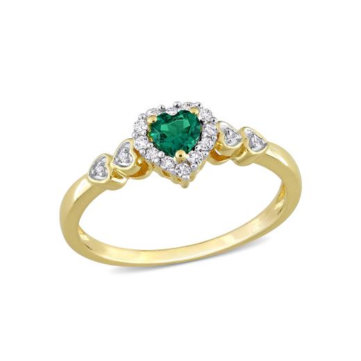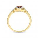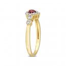 Give yourself a royal look with this vintage heart halo ring. Crafted in lustrous yellow plated sterling silver, this classic ring features a heart-cut, prong-set garnet decorated with a halo created by 12 prong-set created white sapphire gemstones and four pave-set diamonds embellished half way on both sides of the band in heart designs. Polished with a brilliant shine, this promise ring is a perfect gift for impressing your lady love.