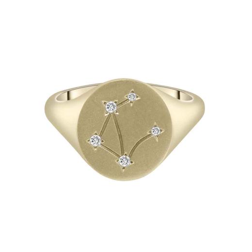 Introducing the exquisite Zodiac 10K Yellow Gold Diamond Libra Signet Ring, a truly special piece that combines the elegance of yellow gold with the celestial beauty of diamonds.