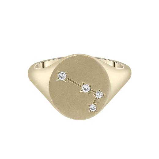 Introducing the magnificent Zodiac 10K Yellow Gold Diamond Aries Signet Ring, a stunning piece that combines the allure of yellow gold with the celestial beauty of diamonds.