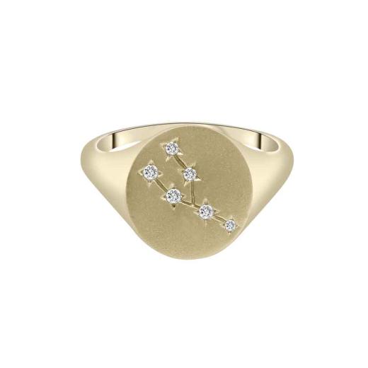 Introducing the captivating Zodiac 10K Yellow Gold Diamond Taurus Signet Ring, a remarkable piece that combines the allure of yellow gold with the celestial beauty of diamonds.