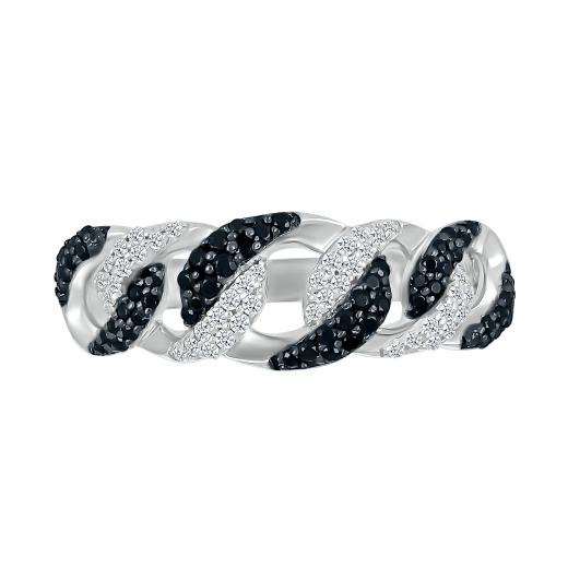 The Sterling Silver 0.37CTW Black and White Diamond Link Ring is designed to be both comfortable and stylish, making it suitable for everyday wear or special occasions. Its contemporary design allows it to stand out on its own or be stacked with other rings for a trendy and personalized look.