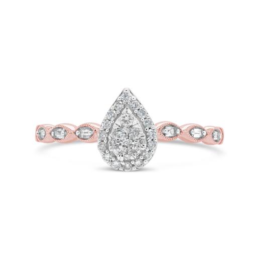 Embrace the sentiment of everlasting love with our 10K Rose Gold 0.20CTW Diamond Promise Ring, a cherished treasure that captures the essence of your commitment. Whether it marks the beginning of a beautiful journey or a milestone in your relationship, this ring celebrates the beauty of a promise made from the heart. With every glance at this beautiful piece, let it reaffirm the love you hold dear and fill your heart with joy as you look forward to a future filled with love and happiness together.