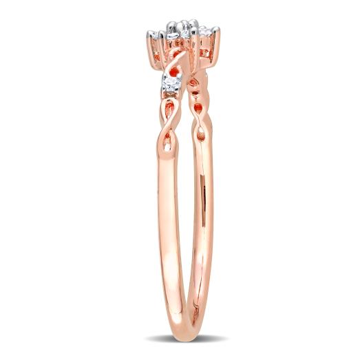 This pretty floral promise ring is crafted in lustrous rose plated sterling silver and features nine round-cut, prong-set diamonds set in a floral and station design. Polished to a brilliant shine, this promise ring goes well with any casual or business attire. Put on your gorgeous gown and wear this glamorous floral ring.