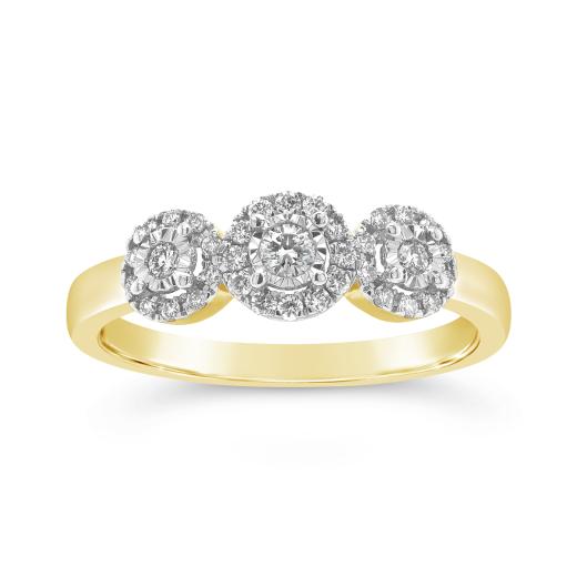Celebrate your love story with the 10K Yellow Gold 0.25CTW Canadian Diamond Three-Stone Ring. Let its exquisite diamonds and yellow gold metal shine as a constant reminder of your past, present, and future together.